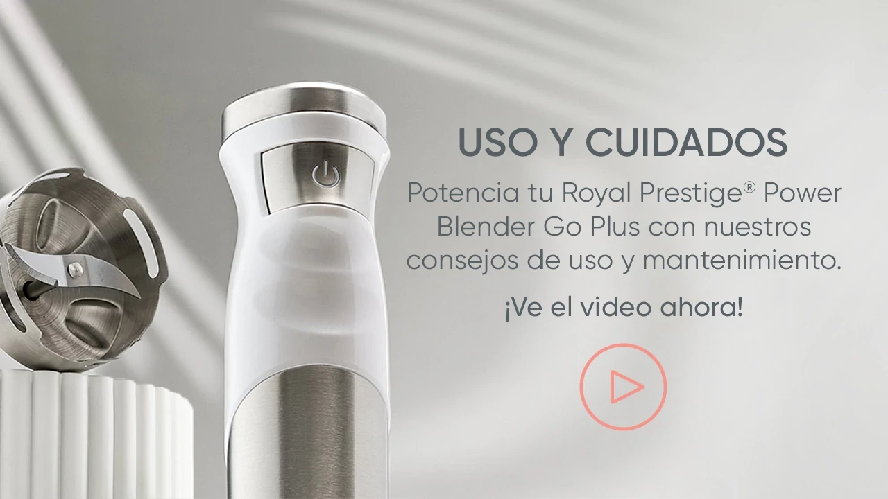 Lleva tu pasión culinaria a donde quiera que vayas con la Royal Prestige® Power Blender Go Plus. Su tecnología inalámbrica y motor que genera 13.500 rpm te permite licuar tus salsas, purés, jugos y mucho más, directamente en tus ollas, sartenes o tazones.